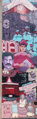 We took our time after the museum, loving the street art. The cable car wasn't running but I saw this station was named for Dr. King. We had a late lunch on Beale Street of gumbo ( yes! No shellfish in it) and shared order of fried green tomatoes, before finding an outdoor patio bar with really good live music. Fellow travellers were three tables from UK and another from Germany.
